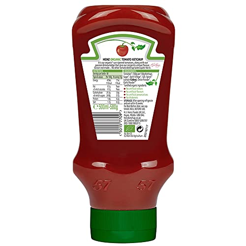 Heinz organic certified bottle tomato ketchup 580 g bottle our classic thick and rich ketchup seasoned with also salt a great-tasting alternative for 96% Less sodium than regular ketchup.