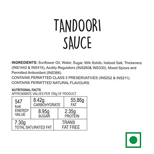 A creamy rich tandoori sauce that pairs perfectly with both Indian and Western dishes. A creamy rich tandoori sauce that pairs perfectly with both Indian and Western dishes. Uses:1. Dunk some tikkas 2. Drizzle on biryani 3. Spread on delicious parantha/roti 4. Cook tandoori paneer