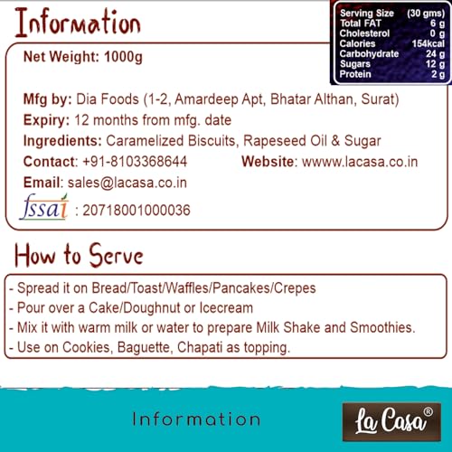 La Casa Biscuit Spread | Made in India | Vegan & SMOOTH | Caramelised & Cinnamon Cookies Spread | 1kg |
