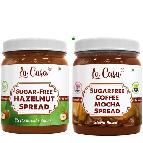 La Casa Sugar-Free Hazelnut Spread and Coffee Mocha Spread | Stevia Based | 100% Natural with added crunchies | Product of India | Combo of 2 | 2x350g |