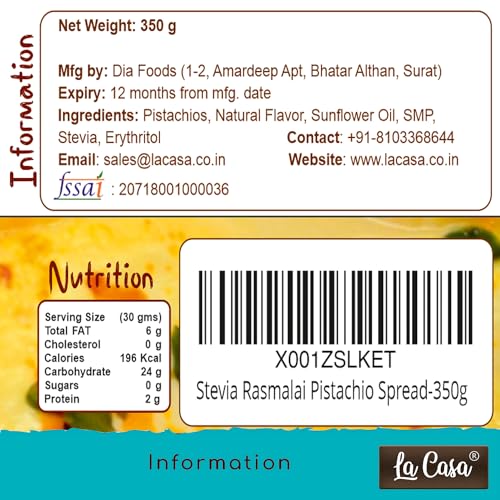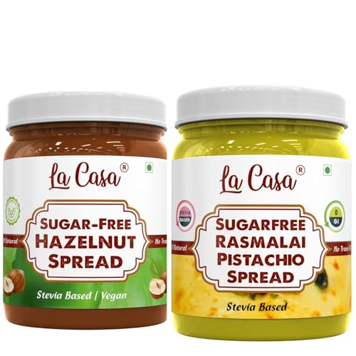 La Casa Sugar-Free Hazelnut Spread and Rasmalai Spread | Stevia Based | 100% Natural with added crunchies | Product of India | Combo of 2 | 2x350g |
