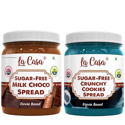 La Casa Sugar-Free Milk Choco Spread and Crunchy Cookies Spread | Stevia Based | 100% Natural with added crunchies | Product of India | Combo of 2 | 2x350g |