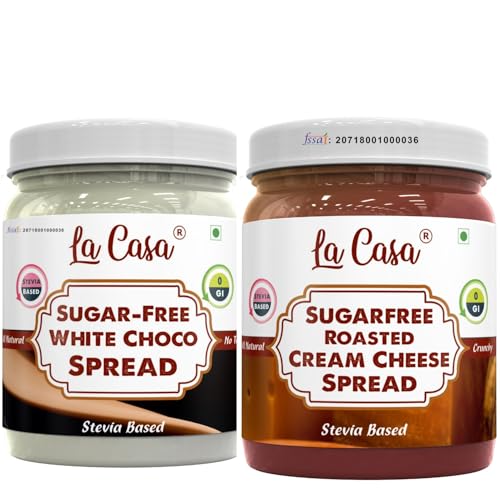 La Casa Sugar-Free Roasted Cream Cheese Spread and White Choco Spread | Stevia Based | 100% Natural with added crunchies | Product of India | Combo of 2 | 2x350g |