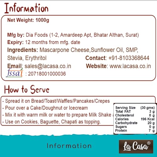 La Casa Sugar-Free Roasted Cream Cheese Spread | Stevia Based | 100% Natural with added crunchies | Product of India | 1kg |