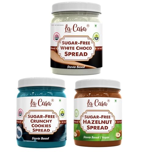 La Casa Sugar-Free White Choco Crunchy Cookies Hazelnut Spread | Stevia Based | 100% Natural with added crunchies | Product of India | Combo of 3 | 3x350g
