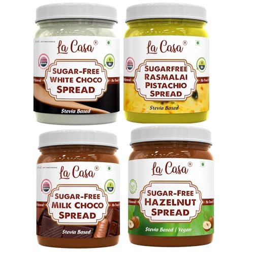 La Casa Sugar-Free White Choco Hazelnut Milk Choco Rasmalai Spread | Stevia Based | 100% Natural with added crunchies | Product of India | Combo of 4 | 4x350g