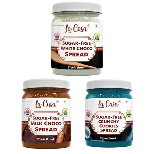 La Casa Sugar-Free White Choco Milk Choco Crunchy Cookies Spread | Stevia Based | 100% Natural with added crunchies | Product of India | Combo of 3 | 3x350g