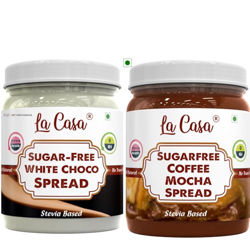 La Casa Sugar-Free White Choco Spread and Coffee Mocha Spread | Stevia Based | 100% Natural with added crunchies | Product of India | Combo of 2 | 2x350g |