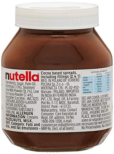 Make your breakfast interesting with Nutella- hazelnut spread with cocoa. Packed with the richness of selected hazelnuts and delicious cocoa it is the most trusted breakfast spread brand across the world. Nutella can be easily spread over bread roti dosa or idli and variety of other breakfast dishes. It is 100% vegetarian and contains no preservatives. Its unique flavour will leave you asking for more. So have a happy start to your mornings with Nutella- hazelnut spread with cocoa.