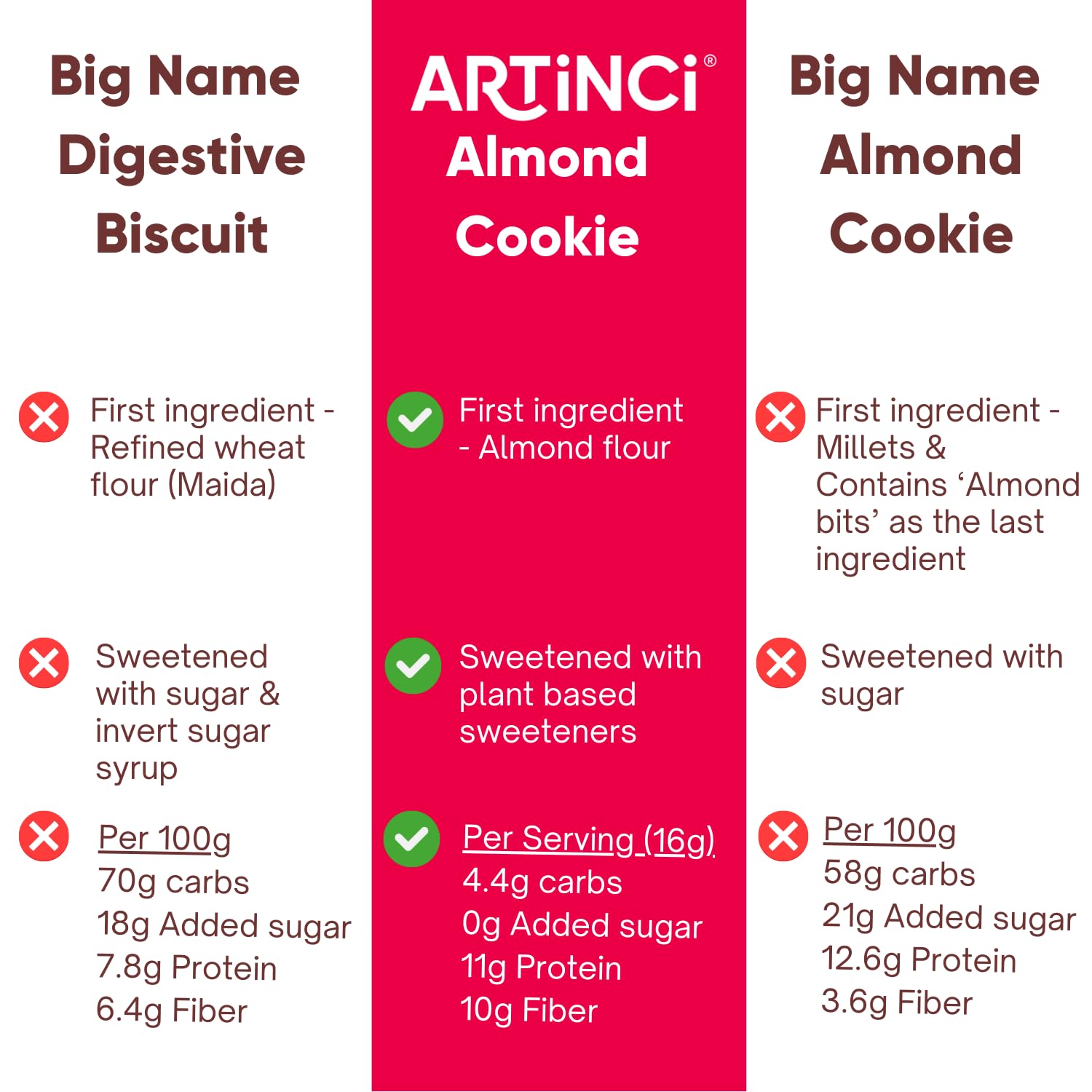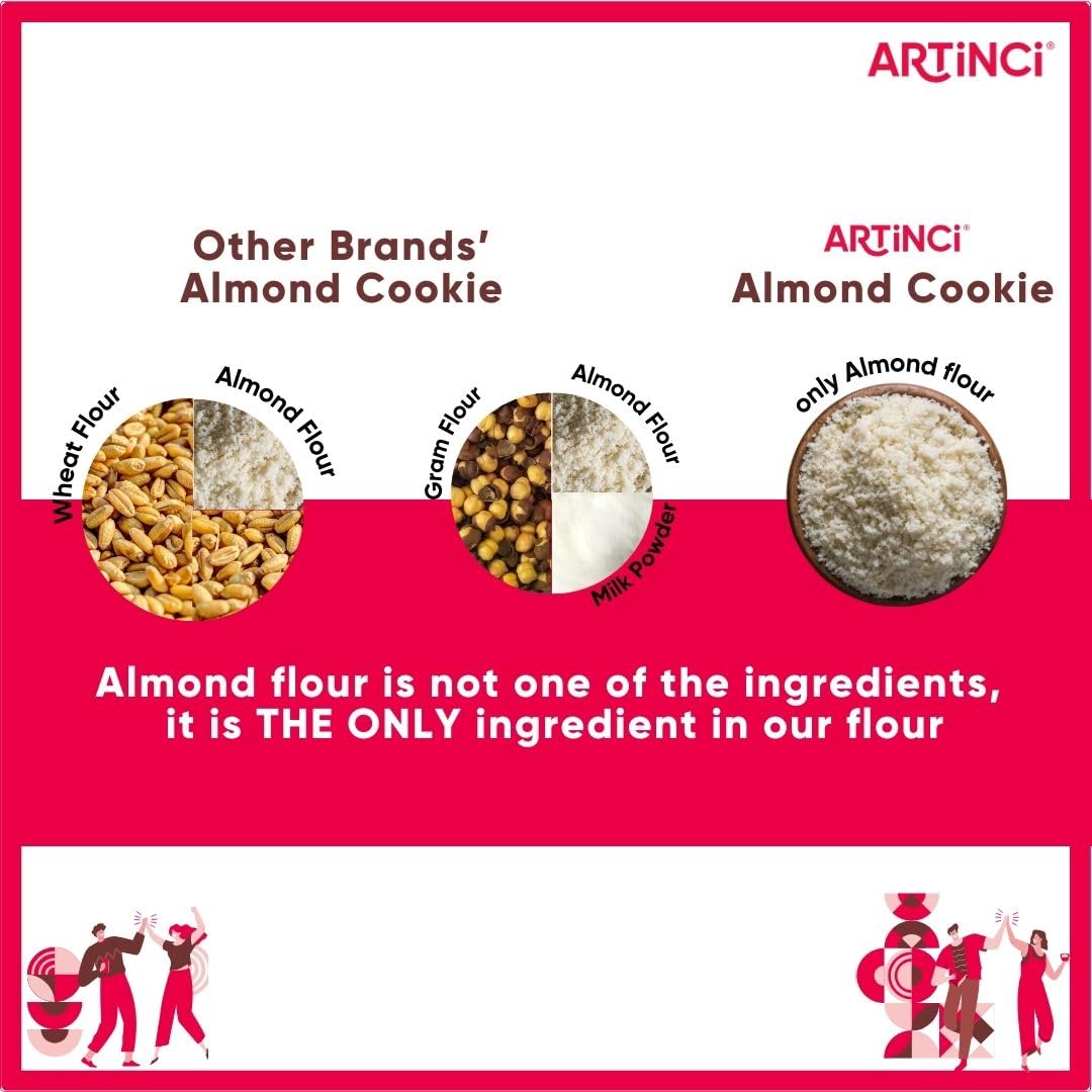 Artinci Keto Almond Cookies | As Seen on Shark Tank | 100% Almond Flour | Sugar Free Diabetic Friendly with High Protein & Fibre Diet Biscuits | Low GI & Carbs | Gluten Free (185g x Pack of 1)