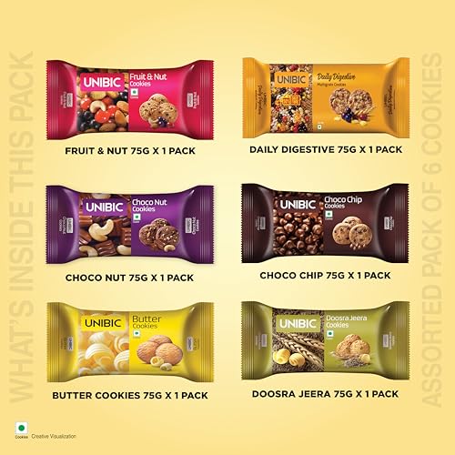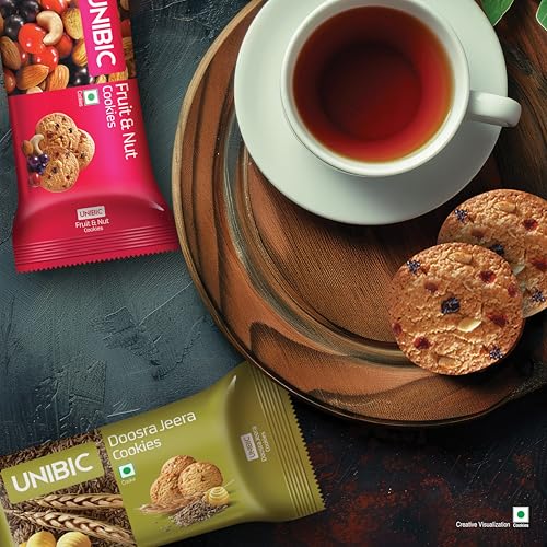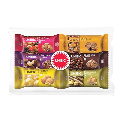 Choco Chip Cookies: Every bite of the Choco Chip cookie will give you a mouthful of chocolate. Filled with chocolate chips these cookies are specially baked for the chocoholics. Fruit And Nut Cookies:Lots of nuts and fruits make this cookie a bicalicious fruity snack. Filled with blackberry cranberry fruits cashew and almonds these cookies are an all-time favourite. Doosra Jeera Cookies: A flavourful combination of butter jeera and ajwain makes for a perfect cookie with your evening tea. Butter Cookies: Baked with dollops of butter these crisp cookies let you savour the real taste of butter. These cookies contain 15% butter three times more than our nearest competition. Honey Oatmeal Cookies: These legendary cookies are inspired by the spirit of the Australia and New Zealand Army Corps. In India they were introduced by UNIBIC and were then called Anzac Oatmeal Cookies. The rich taste of honey combined with oats makes these one of our favourites.