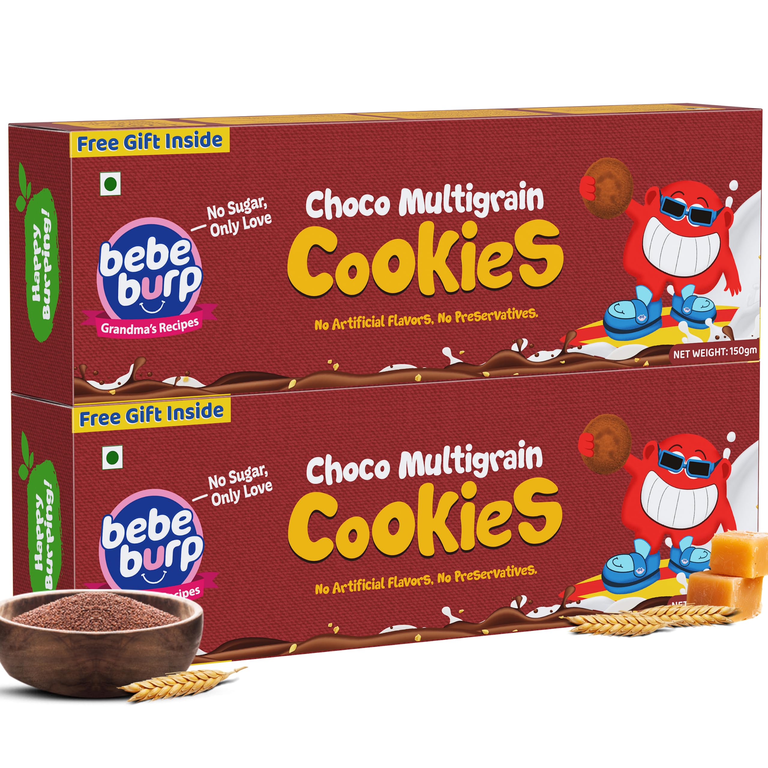 Bebe Burp - Choco Multigrain Cookies - 150gm each (Pack of 2) Tasty & Healthy Cookies For Kids | No Artificial Preservatives & Flavours | Natural Sweetness Of Jaggery Biscuits | 300gm