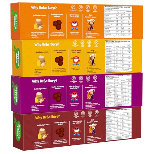 Bebe Burp-Organic Ragi,Whole Wheat, Oats & Chocolate Cookies | Natural Tasty & Healthy Cookies | No Preservatives & Artificial Flavors | Snacks For Kids, 600gm (Pack of 4)