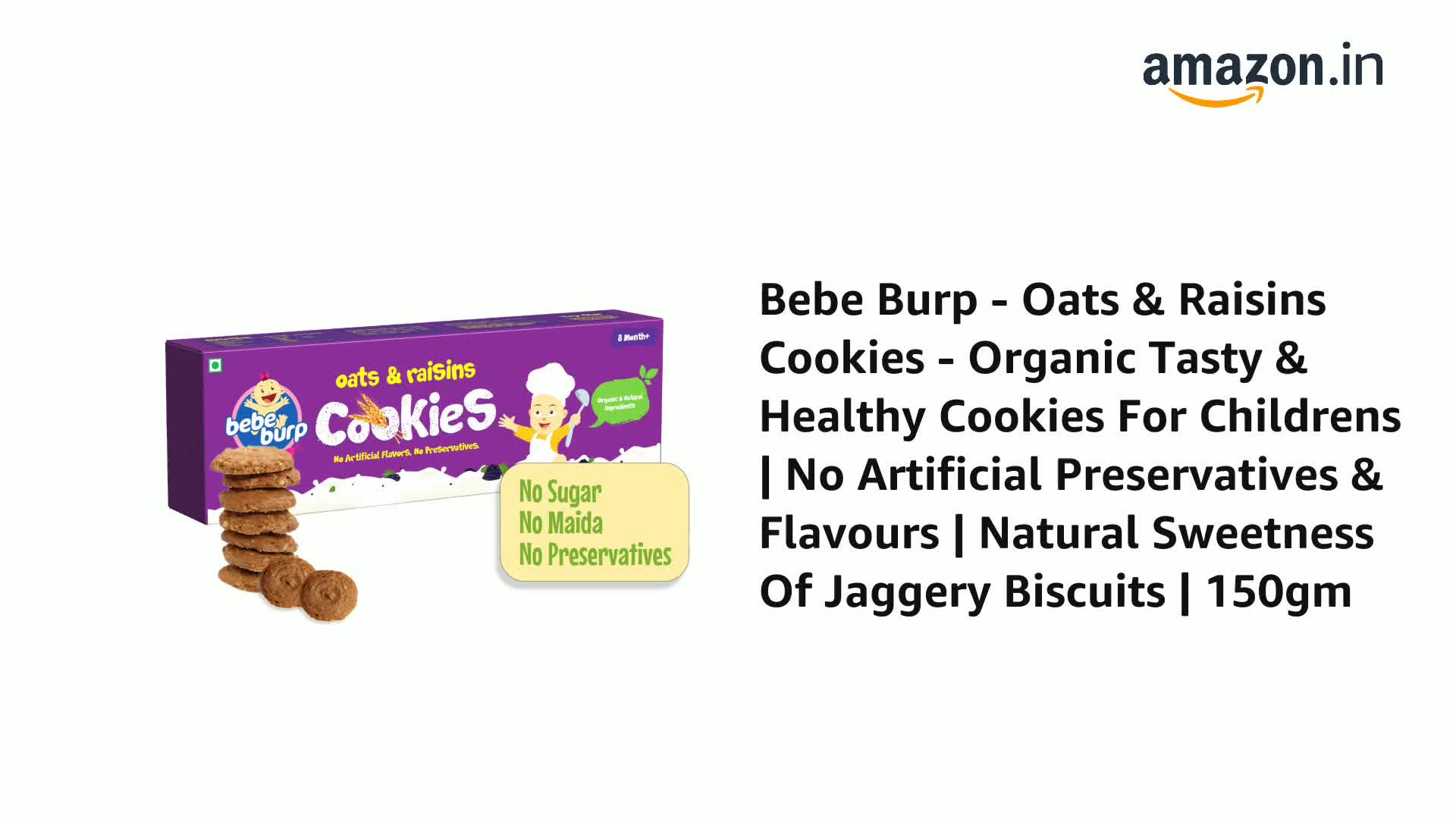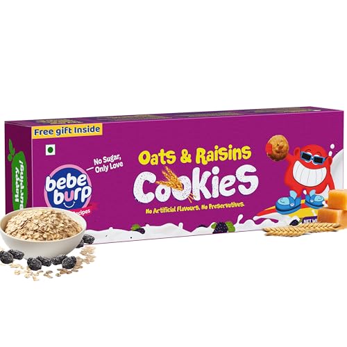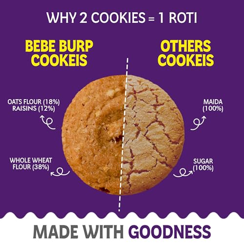 BE'BE' BURP - Oatmeal Chocolate Chip & Raisins Cookies - Organic Tasty & Healthy Cookies for Childrens | No Artificial Preservatives & Flavours | Natural Sweetness Of Jaggery Biscuits | 150Gm