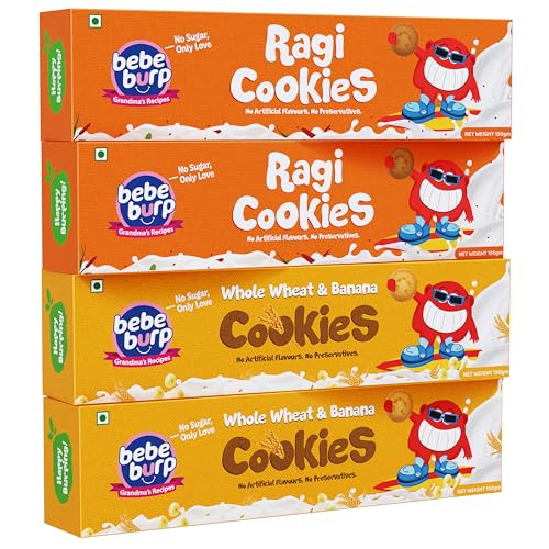 Bebe Burp Organic Ragi & Whole Wheat Baby Cookies | Natural, Tasty & Healthy Snacks | No Preservatives or Artificial Flavors | 150g (Pack of 4)