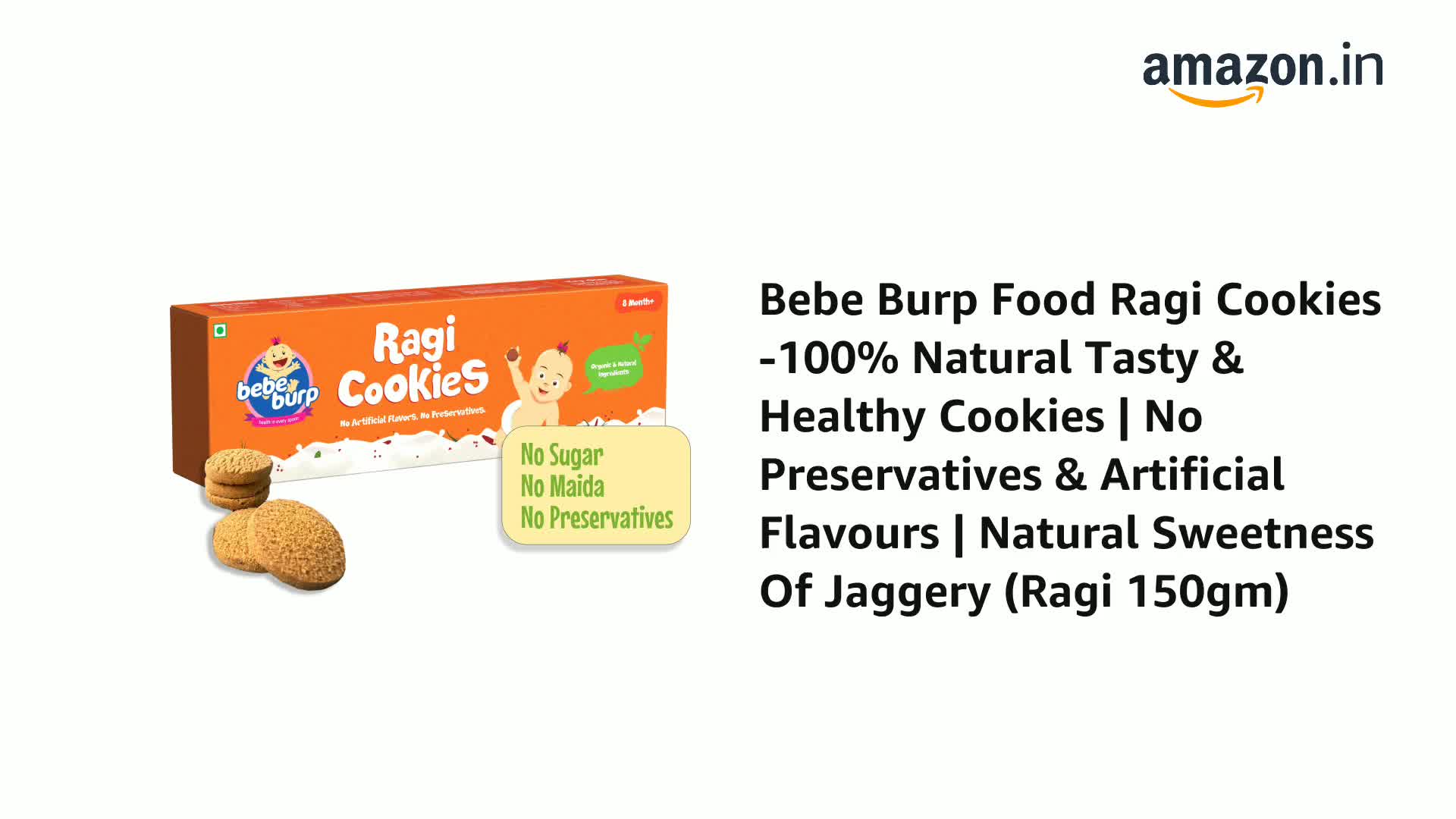 BE'BE' BURP Food Ragi Cookies -100% Natural Tasty & Healthy Cookies | No Preservatives & Artificial Flavours | Natural Sweetness Of Jaggery(Ragi 150Gm)