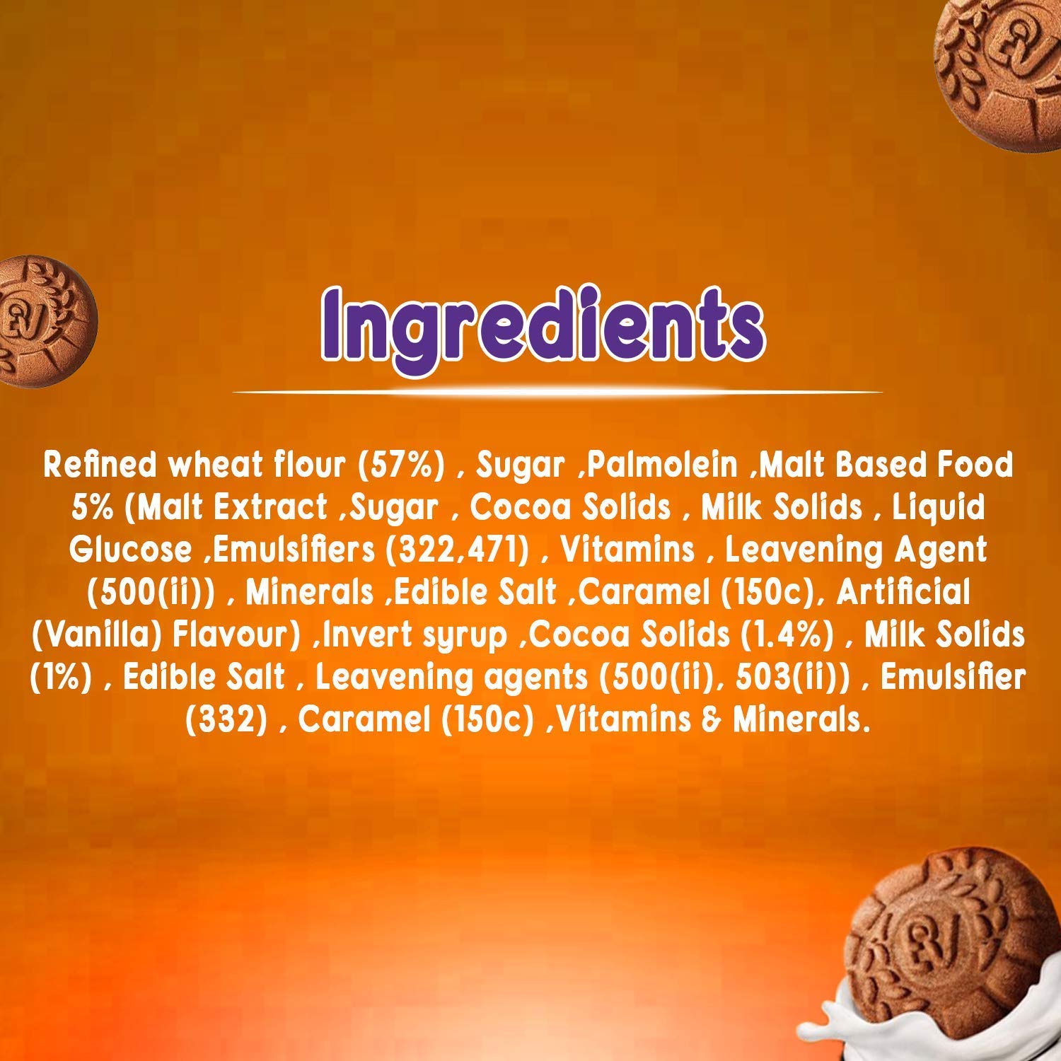 Bournvita biscuits provides the choice of a delicious biscuit enriched with the wholesome goodness of Bournvita. They are crunchy chocolatey cookies that have the right balance of taste and health.