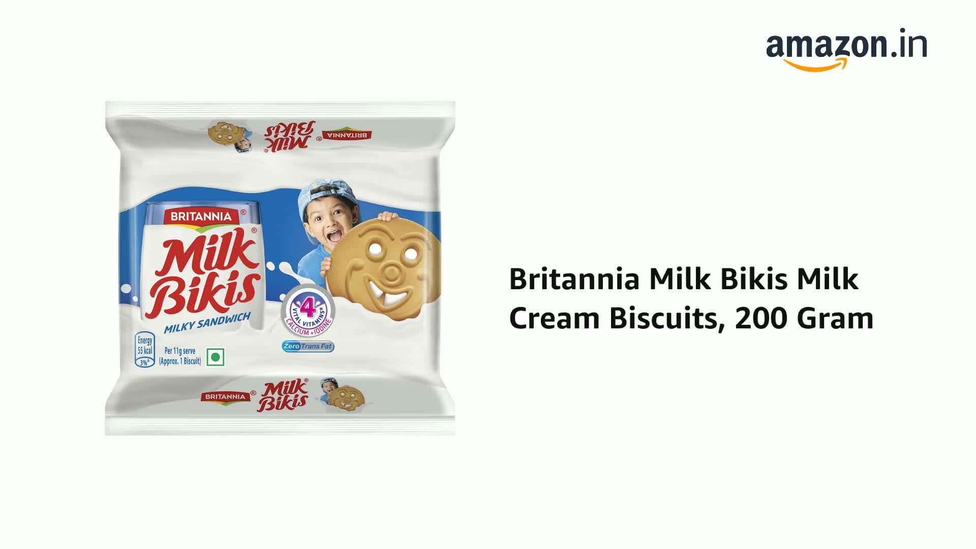 Britannia Milk Bikis Milk Cream Biscuits are crunchy biscuit sandwich filled with a milky cream. The biscuits are prepared with essential nutrients iron vital vitmains and iodine making them a healthy snack for your children. Every delicious bite of Milk Bikis helps in mental and physical development of growing kids. Britannia biscuits and cookies for long has been a part of every home sharing those moments of joy. Believing in delivering fresh and healthy products Britannia India manufactures some of India's favourite brands like 50-50 Tiger NutriChoice Bourbon Good Day Marie Gold and Little Hearts.