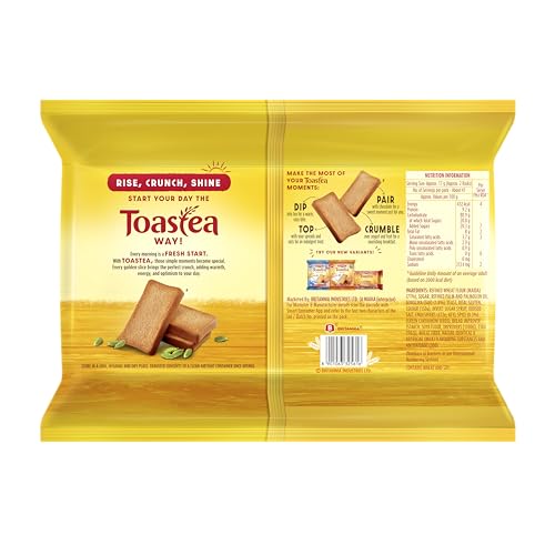 Britannia Bake Rusk Toast is been a traditional tea companion and is loved by many. Britannia rusk toast is as crispy as your traditional one but with a hint of elaichi and right amount of sweetness its taste will leave you amazed. Britannia toastea premium bake rusk for long has been a part of every home sharing those moments of joy. Believing in delivering fresh and healthy products Britannia India manufactures some of India's favourite brands like 50-50 Tiger NutriChoice Bourbon Good Day Milk Bikis and Little Hearts.
