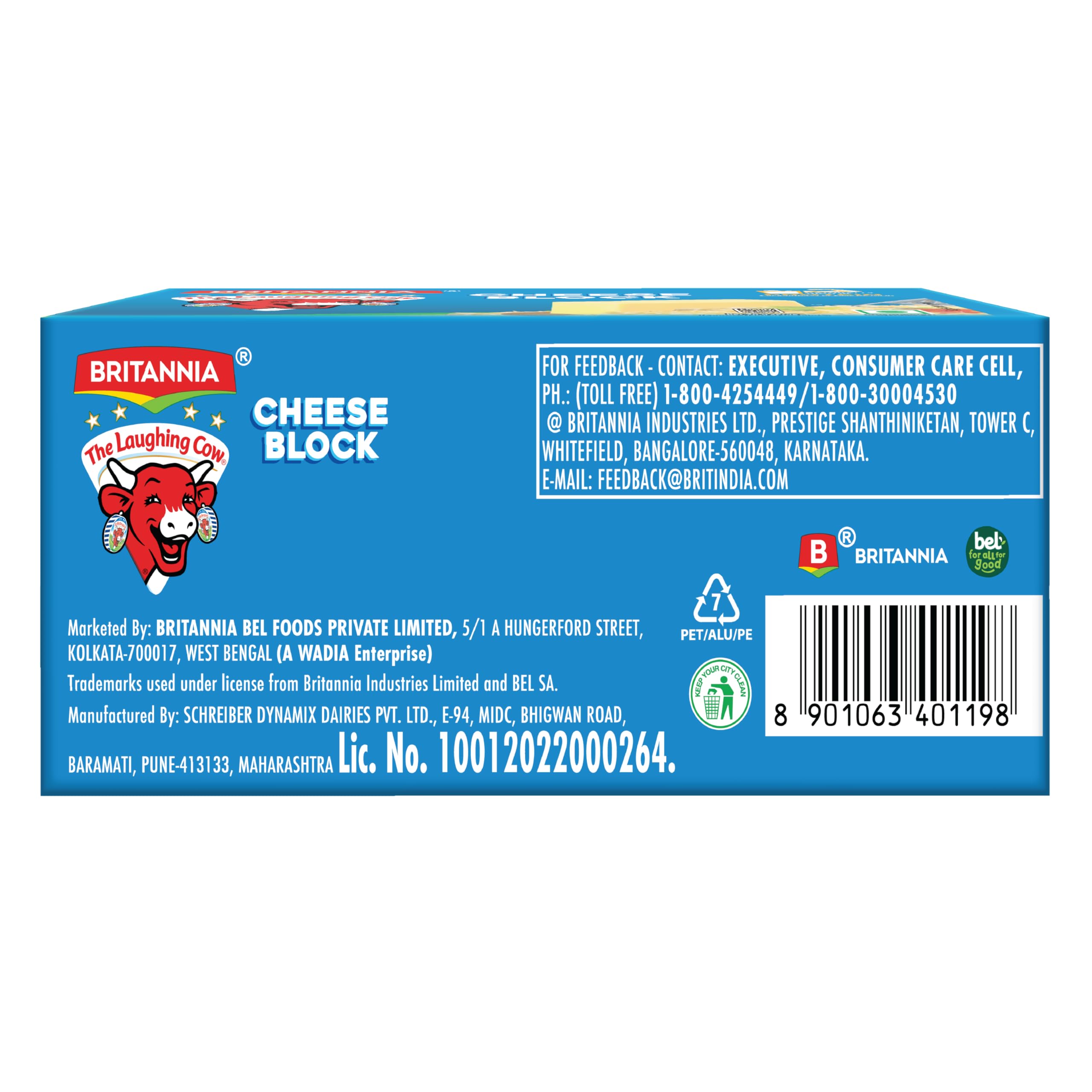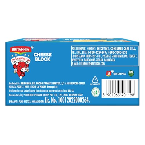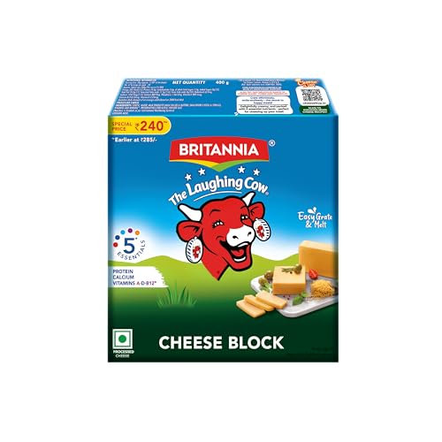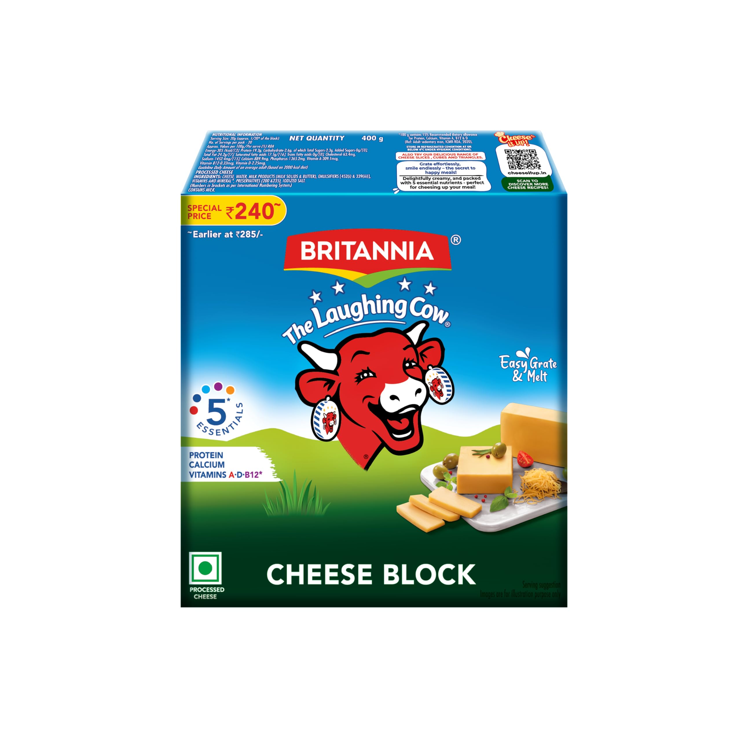 Made with the goodness of cow's milk Britannia The Laughing Cow Cheese Block is a delicious creamy block of cheese that you can cut melt and grate to add cheesy flavours to food. Satisfy your cheesy cravings with Britannia processed cheese that has a rich flavour. Contains the power of milk proteins and calcium Britannia The Laughing Cow Cheese melts easily and dissolves to give a perfect taste. Believing in delivering fresh and healthy products Britannia India manufactures some of India's widest range of cheese- slices cubes blocks spreads pizza cheese and much more.