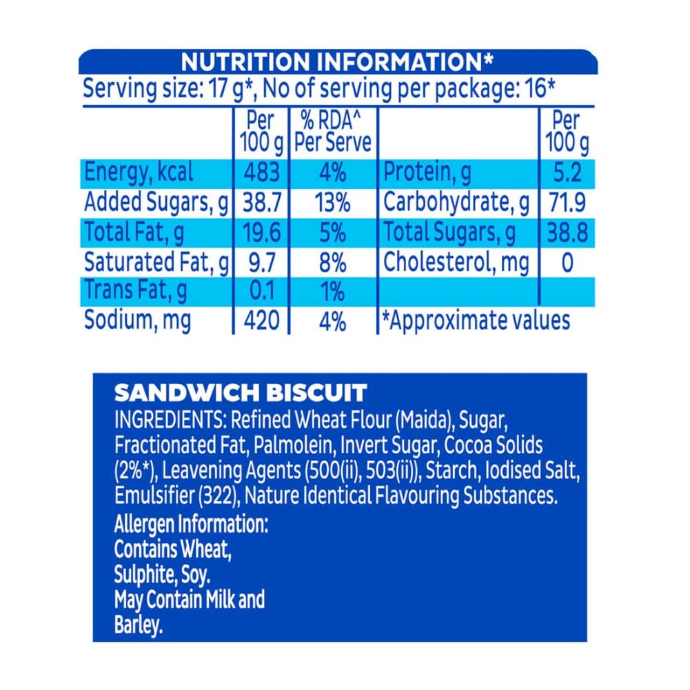 • Cadbury OREO creme biscuits are made with cocoa which defines their unique chocolatey flavour.