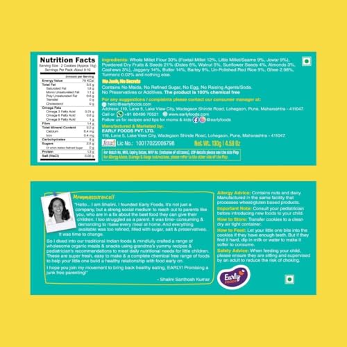 Early Foods - No Maida No White Sugar - Foxtail Millet & Almond Jaggery Cookies | Kids Snack | Sugar free Biscuits for Kids & Adults | Almond Biscuits | No Junk Lunch Box Snack 130g