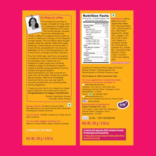 Early Foods - Pack Of 2 Pregnancy Cookies, Millet Biscuits |Jaggery Biscuits(Ragi Biscuits With Sesame & Bajra Barnyard Cookies, Butter), 260 gram