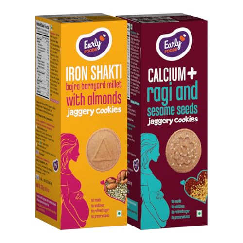Early Foods - Pack of 2 Pregnancy Cookies Millet Biscuits | Jaggery Biscuits (Ragi Biscuits with Sesame & Bajra Barnyard Cookies)