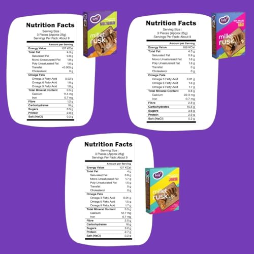 Pack 1: Ragi Millet Rusk 230g Pack 2: Jowar Millet Rusk 230g Pack 3: Multigrain Millet Rusk 230g