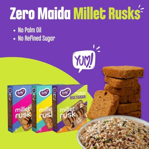 Early Foods - Pack of 3 : Ragi, Jowar & Multigrain Rusks | Millet Rusk Sugar Free | No Maida Toast | Rusks for Kids | Millet Toast Biscuits 163g x 3