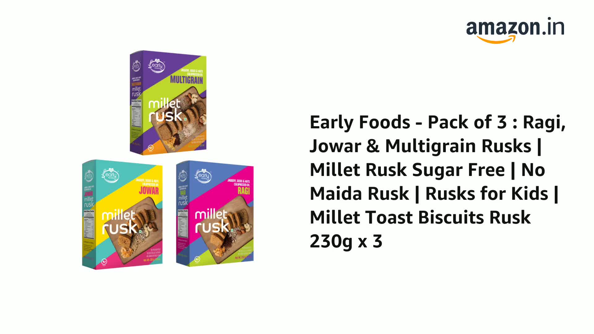 Early Foods - Pack of 3 : Ragi Jowar & Multigrain Rusks | Millet Rusk Sugar Free | No Maida Rusk | Rusks for Kids | Millet Toast Biscuits Rusk 230g x 3