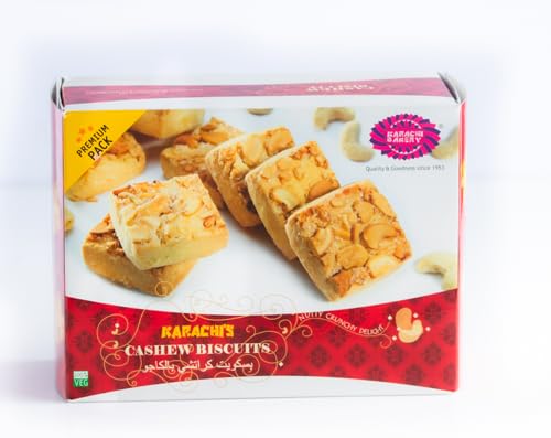 • Karachi Bakery Cashew Biscuits are a delectable treat made with the finest quality ingredients including cashews.