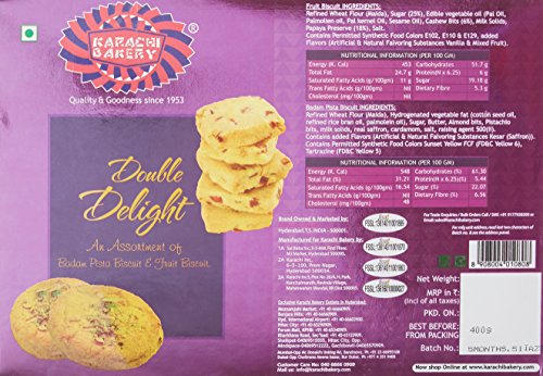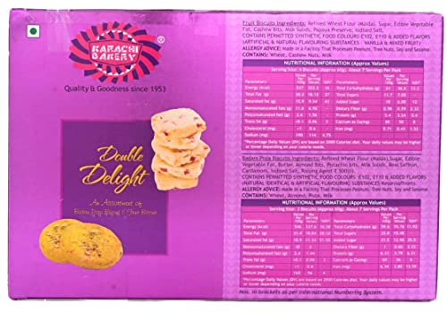 Karachi Bakery Double Delight Fruit Biscuit with Badam (Almond) and Pista (Pistachio) is a delicious combination of flavors and textures. These biscuits offer a delightful blend of fruity sweetness the richness of almonds and the nuttiness of pistachios. The Double Delight Fruit Biscuit with Badam and Pista from Karachi Bakery features a buttery and crumbly biscuit base that serves as the canvas for this delectable treat. Embedded within the biscuit base are pieces of dried fruits such as raisins cherries and candied citrus peel which add a burst of fruity sweetness.