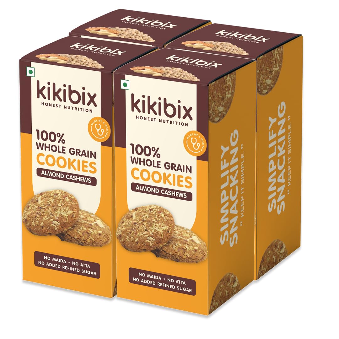 Kikibix Almond Cashew Cookies | Immunity Booster | Almond Raisins & Apricots | Raw Honey Ginger Cinnamon | No Maida No Refined Sugar