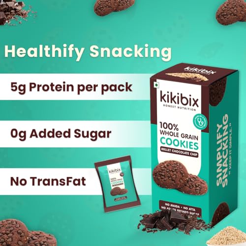 HomeGrocerySnacksCookiesKikibix Millet Chocochip & Fruit n Nut Cookies Combo Pack High Fiber Tasty Jaggery biscuit With Nuts & Seeds & No Maida Diabetic Friendly Whole grain Healthy Cookie Snacks for Kid & Adults 260gm