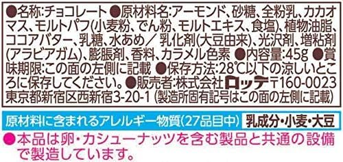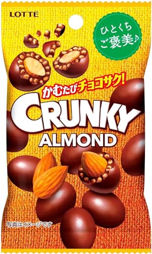 Carefully selected almonds are wrapped in crispy malt puffs and mellow milk chocolate. You can enjoy the crunchy texture of the malt puff that is unique to Cranky and the crunchy texture and fragrant taste of roasted almonds at the same time. This is a small bite-sized pack that you can easily enjoy. Ingredients: Almonds sugar whole milk powder cacao mass malt puff (wheat flour starch malt extract salt) vegetable oil cocoa butter lactose starch syrup / emulsifier (soybean derived) brightener thickener (gum arabic) Leavening agents fragrances caramel colors