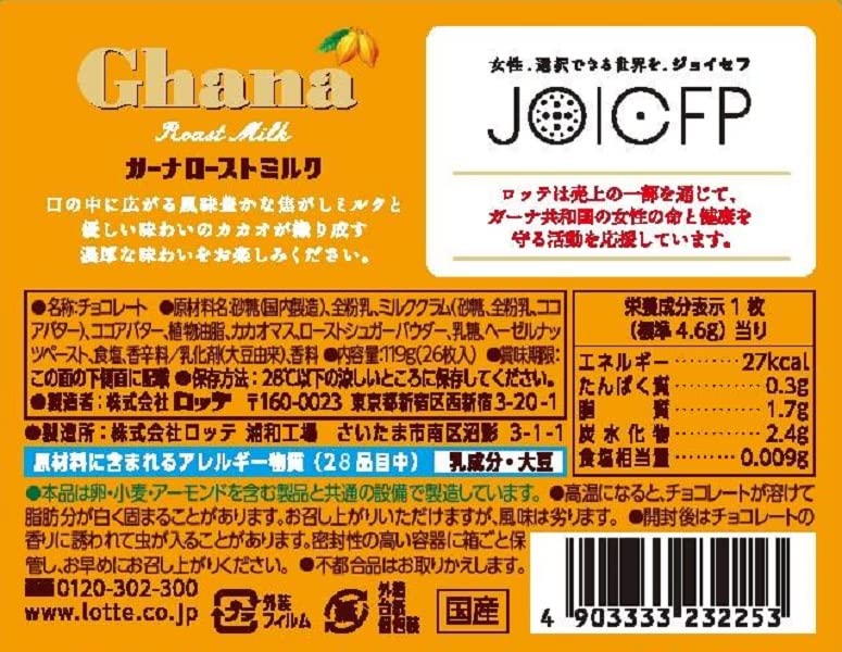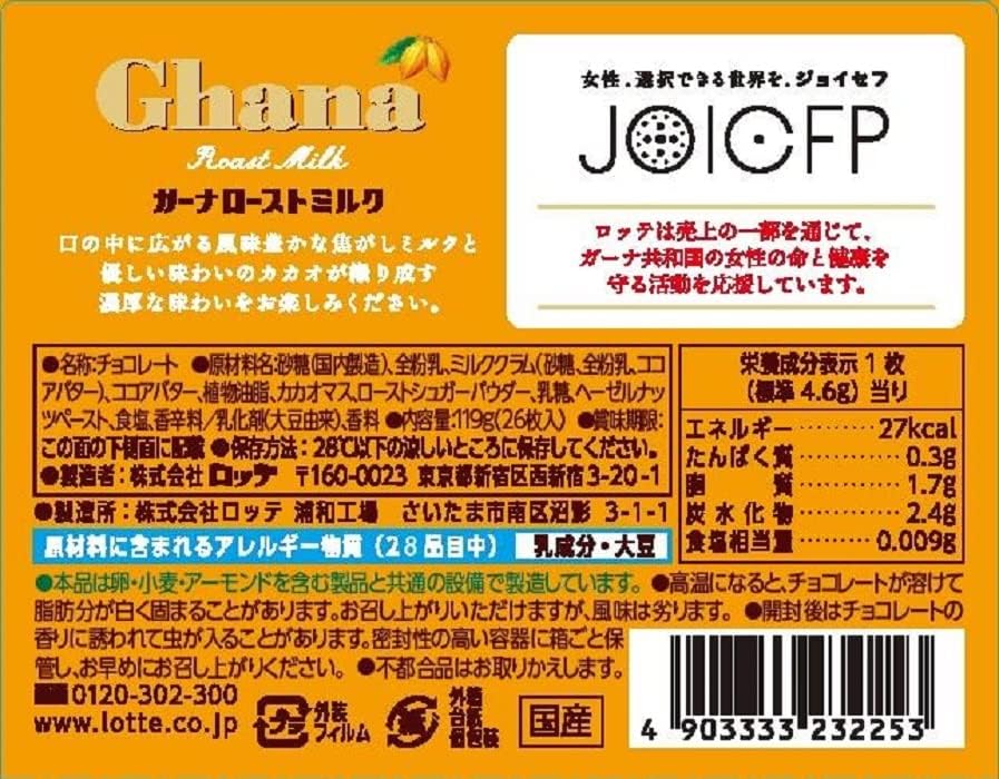 Lotte Ghana Roast Milk Excellent 4.9 oz (119 g) | 26 Bite Sized Pieces in Each Box | Made in Japan | Japanese Chocolate | Japanese Sweets