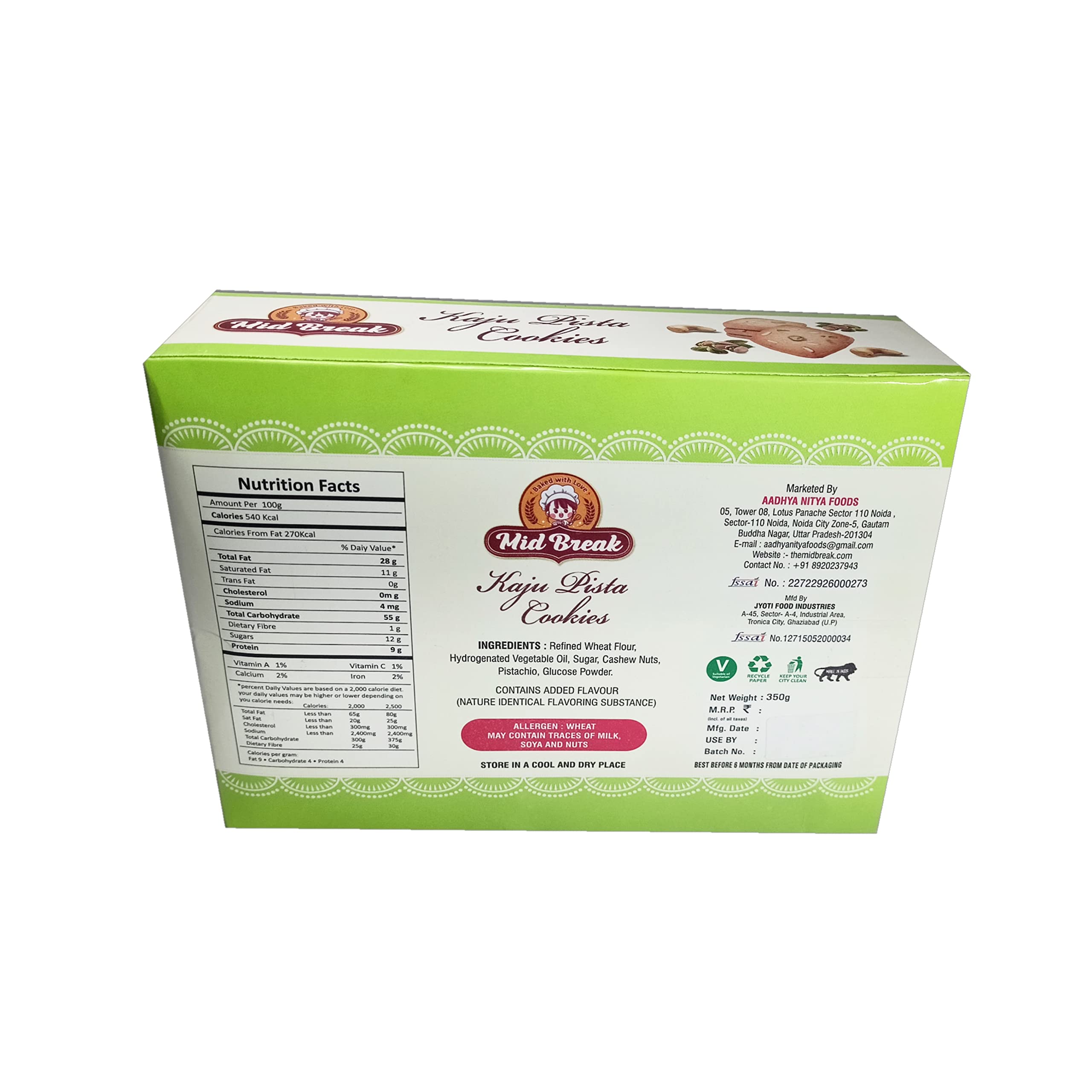 Kaju Cookies are a great mix of freshly-crushed cashews, chios, flour, oil and sugar. They are very crispy and crunchy. They are a great melt-in-the-mouth delights. Kaju cookies and a cup of tea is all we need at times. They are a great snack for breakfast or afternoon tea. Fruit Kaju cookiesalshelp you to prevent gain and keep you feeling full, healthy and happy. You can buy and send them to your loved ones as a gift. You canalskeep some packets in your pantry for quick snacking. Midbreak cookies are wholesome blend of healthy and natural ingredients. With every bite our cookies melt in your mouth, giving you a rich flavour of all those natural ingredients. Midbreak cookies are made with utmost love and care. We always try to serve you with the best we can. Midbreak cookies are 100% eggless and vegetarian cookies.