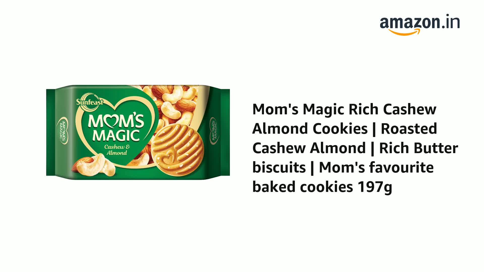 Mom's Magic Cashew Almond Cookies - Just the way Mom would make it. Nutty cookies Mom's Magic are loaded with choicest cashews and almonds which are roasted to perfection for a rich full-bodied taste. Complemented with roasted Butter that has mildly sweet caramel notes which give a unique flavour and rich smoothness to Mom's Magic Biscuits. A perfect tea time snack these cookies are your 4pm companion for when you want a bite of sweet nuttiness that envelops your senses just like a mom's hug. Enjoy these baked biscuits and step into a world abundant with warmth heartfelt hugs and mom's magical taste.