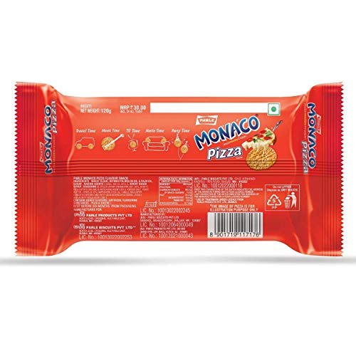 Parle new pizza flavoured Monaco is perfect for all parties. Monaco classic was launched in 1942 and is truly an anytime brand. Available in classic salted pizza piri piri and zeera flavours. A light and crunchy biscuit sprinkled with salt Monaco includes a namkeen twist to sweet dominated biscuit world. It's a perfect tea-time snack that can be enjoyed with your morning or evening chai.