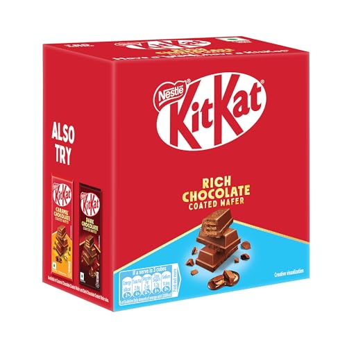 Nestle Kitkat Rich Chocolate Coated Wafer where layers of delicious chocolate meet crispy cocoa wafer. Each bite offers a truly rich experience with its perfect balance of wafer and chocolate. So why wait? Have a rich delicious break!Usage:Consume Directly. Storage-Store in a cool dry and hygienic place. Humidity and temperature may cause the product to develop a whitish layer this does not affect its fitness for consumption.Outer packaging may vary depending on stock availability.
