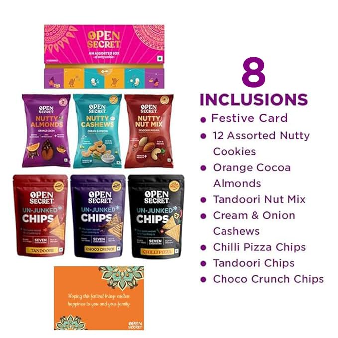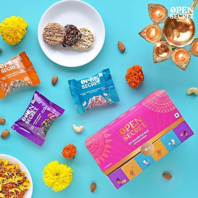 Open Secret Bhaidooj Gift Hamper with Chocolate Cookies | Premium Dry-Fruits Healthy Snacks | Assorted Chocolate Cookies Biscuits Nuts Combo - Cashew Almond Unjunked Chips Bhai dooj Card Roli Chawal Tika Set | Healthy Snacks Hamper For Brother Sister | Gift Box for Bhaiya with Tikka Thread | Dry Fruit with Chocolates