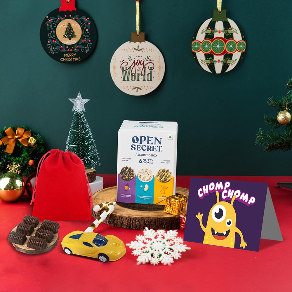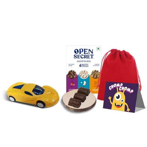 HomeGrocerySnacksCookiesOpen Secret Gifts for Kids | 8 Item Gift Combo - Kids Card, Chocolate Basket/Potli (Pack of 3), Assorted Story Box (6 Cookies), Kids Toy | Healthy Unjuncked Food | Gift Box for Boys/Girls | Gift for Holi
