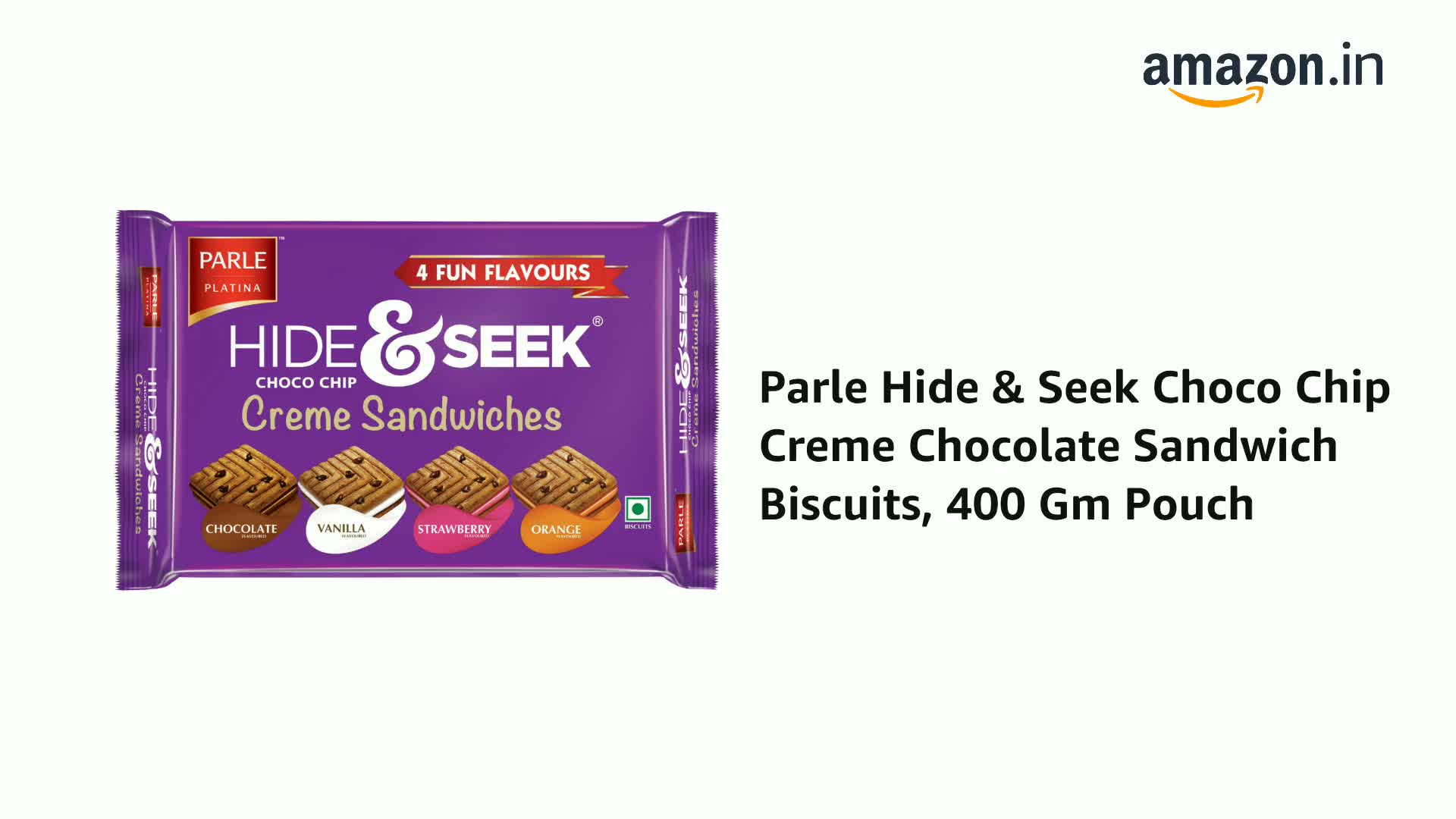 Parle Hide & Seek Choco Chip Creme Chocolate Sandwich Biscuits, 400 Gm Pouch