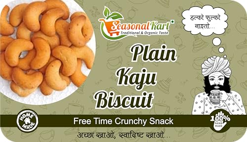 Kaju Biscuits are salty and crispy. The crunchy biscuits will give you a unique experience making your tea time moments even better and tastier. Your ordinary boring moments are sure to get a good twist after munching on these biscuits. It's a crispy and delicious biscuit with a perfect balance of saltiness. It goes wonderfully well with your evening cup of tea. Tea-time is never complete without dry snacks. Enjoy them in your next party. It is protein rich snack as it is made from organic chickpea flour (besan) You can serve it to your family and friends with deep fried chilli pickles and tea. Healthy Light Flaky & Crispy Vege Crackers for any time munching.