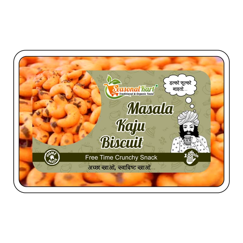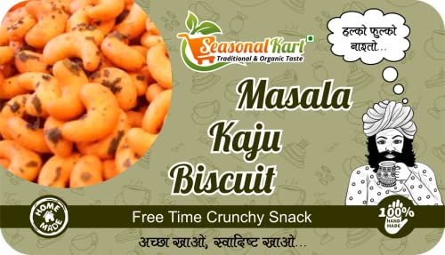 Kaju Biscuits are salty and crispy. The crunchy biscuits will give you a unique experience making your tea time moments even better and tastier. Your ordinary boring moments are sure to get a good twist after munching on these biscuits. It's a crispy and delicious biscuit with a perfect balance of saltiness. It goes wonderfully well with your evening cup of tea. Tea-time is never complete without dry snacks. Enjoy them in your next party. It is protein rich snack as it is made from organic chickpea flour (besan) You can serve it to your family and friends with deep fried chilli pickles and tea. Healthy Light Flaky & Crispy Vege Crackers for any time munching.