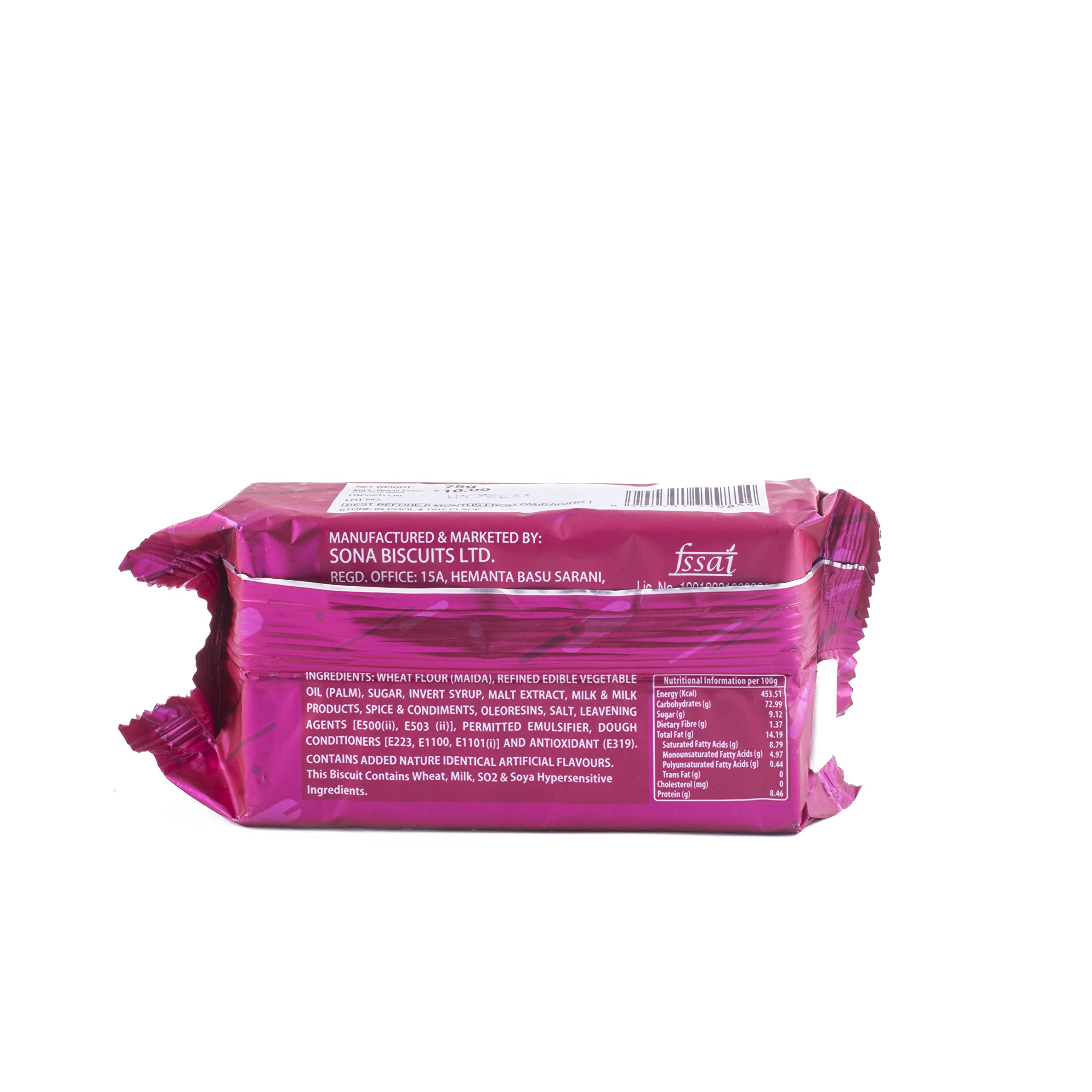 "SOBISCO Dhoom Delicious Butter Biscuits Makhhan ka swad Kalonji ke sath : - SOBISCO - The taste of good health Amazing Creation to suits your taste On a journey to treat the nation and beyond with the best in taste and health Sobisco started its story more than a couple of decades ago. The mission was to create a name that would stand for quality and wholesome goodness. The vision being to give people the gift of nutrition. Established in 1992 this flagship brand of Sona Biscuits has come a long way with its current annual production of 100000 tonnes. The power to gift its customers over 100 varieties of products ranging from sweet to savoury biscuits along with delicious cakes has made Sobisco a force to be reckoned within the FMCG sector : : -:Disclaimer: - Despite our attempts to provide you with the most accurate information possible the actual packaging ingredients and colour of the product may sometimes vary. Please read the label directions and warnings carefully before use. - Dhoom - Delicious Butter Biscuits : Perfect for Anytime Munching : Amazing Creation to suits your taste : Makkhan ka swad Kalonji ke sath : The taste of good health : : : Stroage Instruction : - Store under cool dry and hygienic place - Keep away from direct sunlight : : Nutritional Facts : - Energy - 453 kcal Protein - 8.46g"