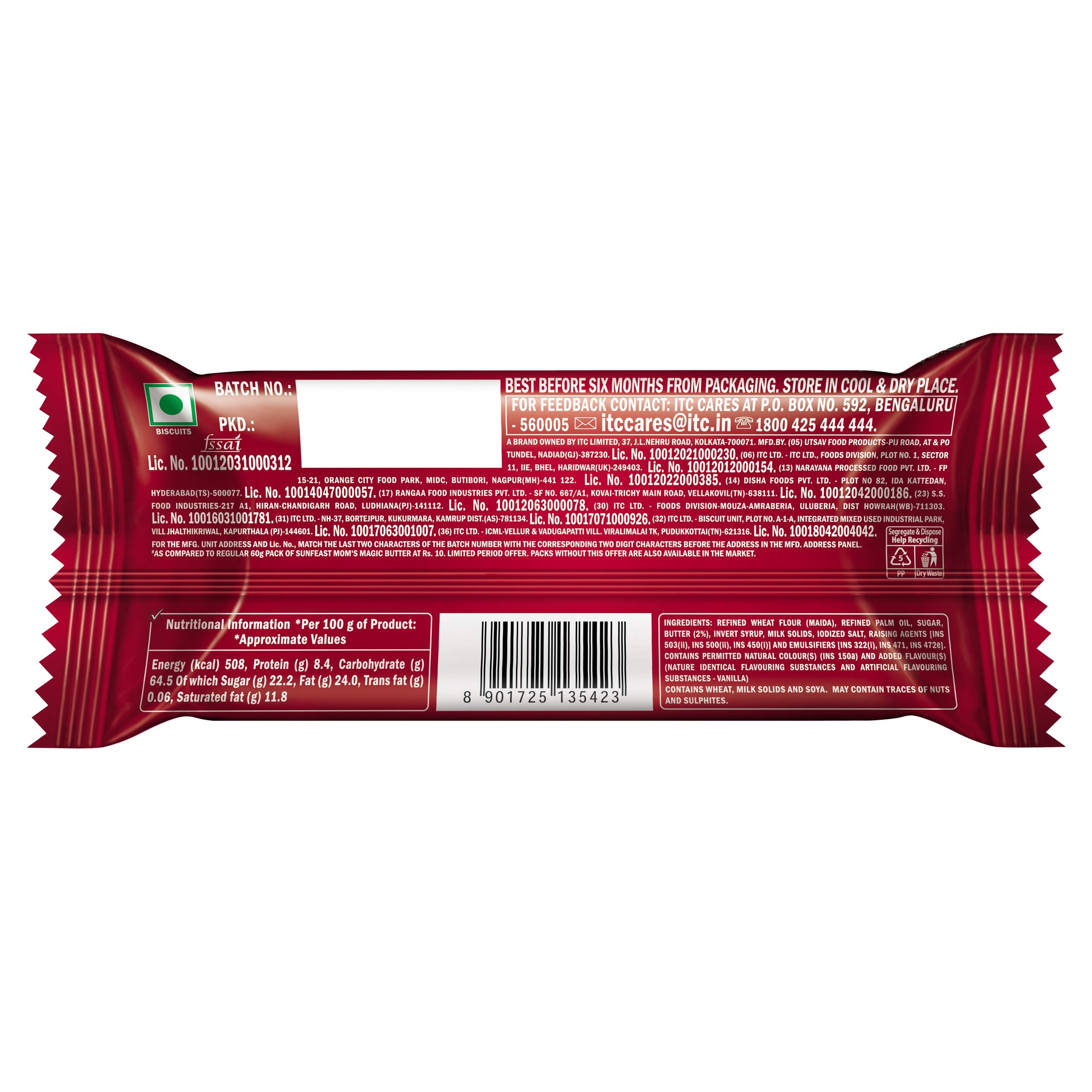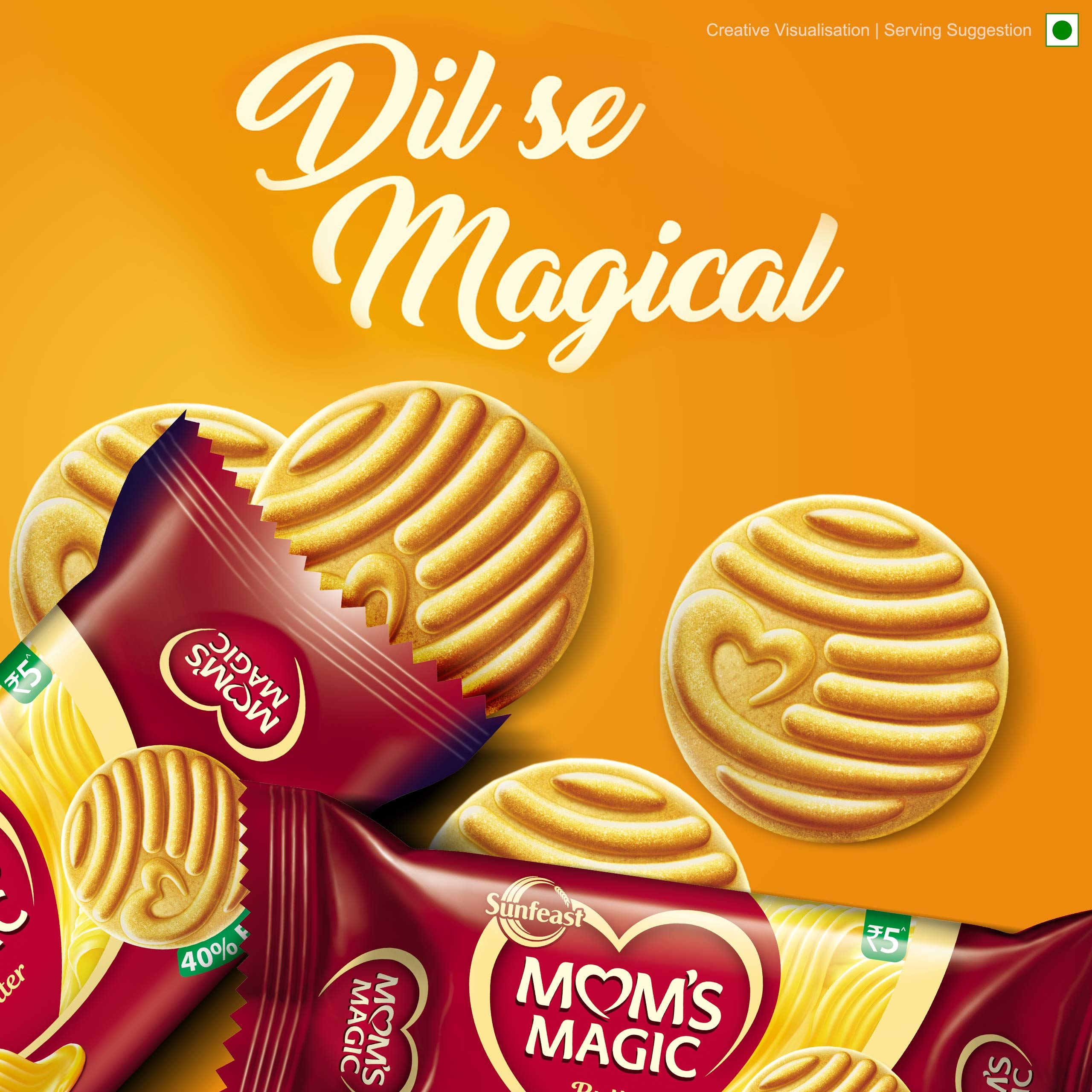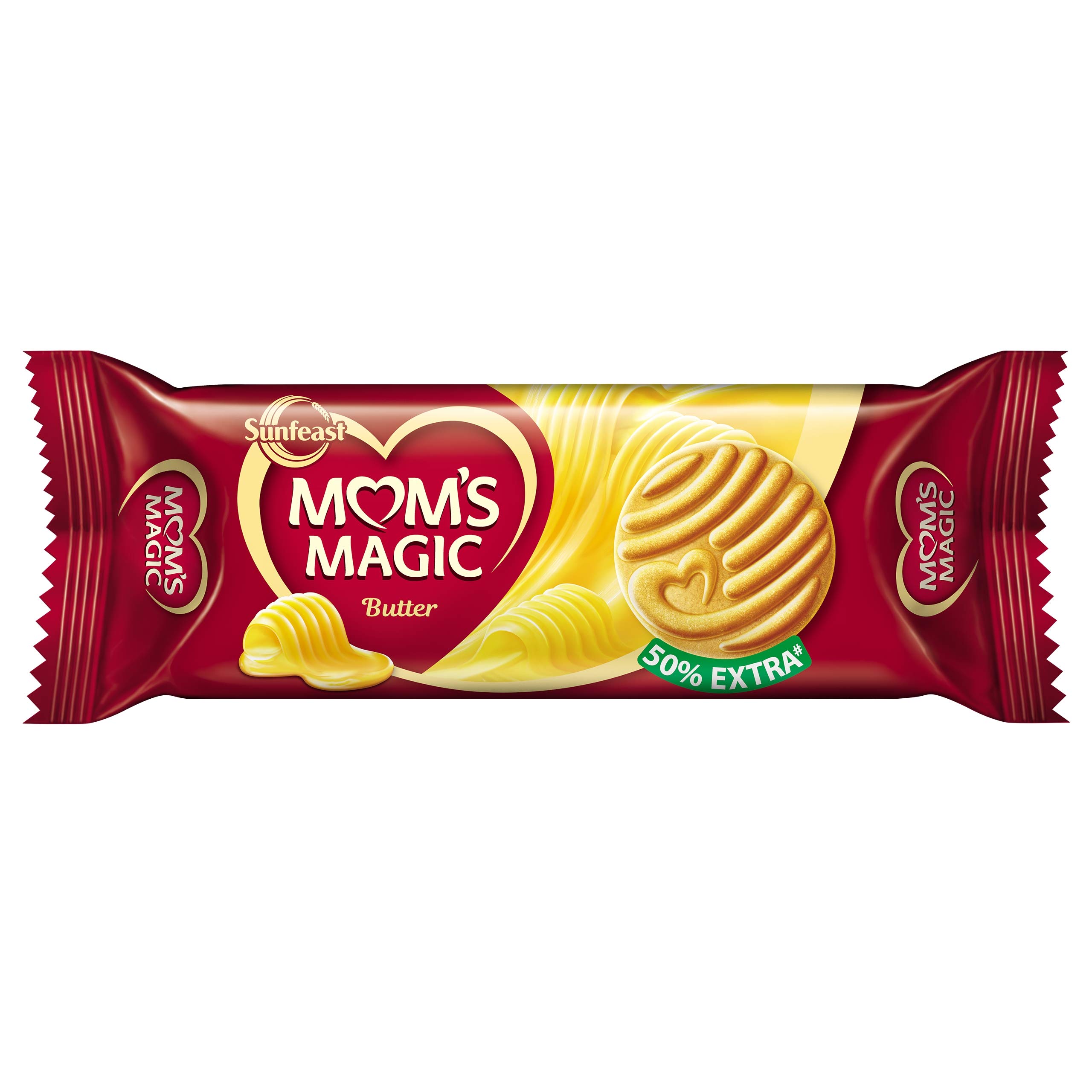 Sunfeast Mom's Magic Rich Butter Cookies - Just the way Mom would make it. Loaded with choicest ingredients that lend a rich full-bodied taste Mom's Magic cookies are the answer for when you're looking for something that reminds you of mom's baked biscuits and a wholesome homey snack. Prepared with high quality roasted butter that has mildly sweet caramel notes gives a unique flavour and rich smoothness that melts in your mouth. Baked to golden perfection the crisp crunch is irresistibly inviting. A perfect tea time snack these biscuits are your 4pm companion for when you want a bite of sweet buttery goodness that envelops your senses just like a mom's hug. Enjoy these baked biscuits and step into a world abundant with warmth heartfelt hugs and mom's magical taste.