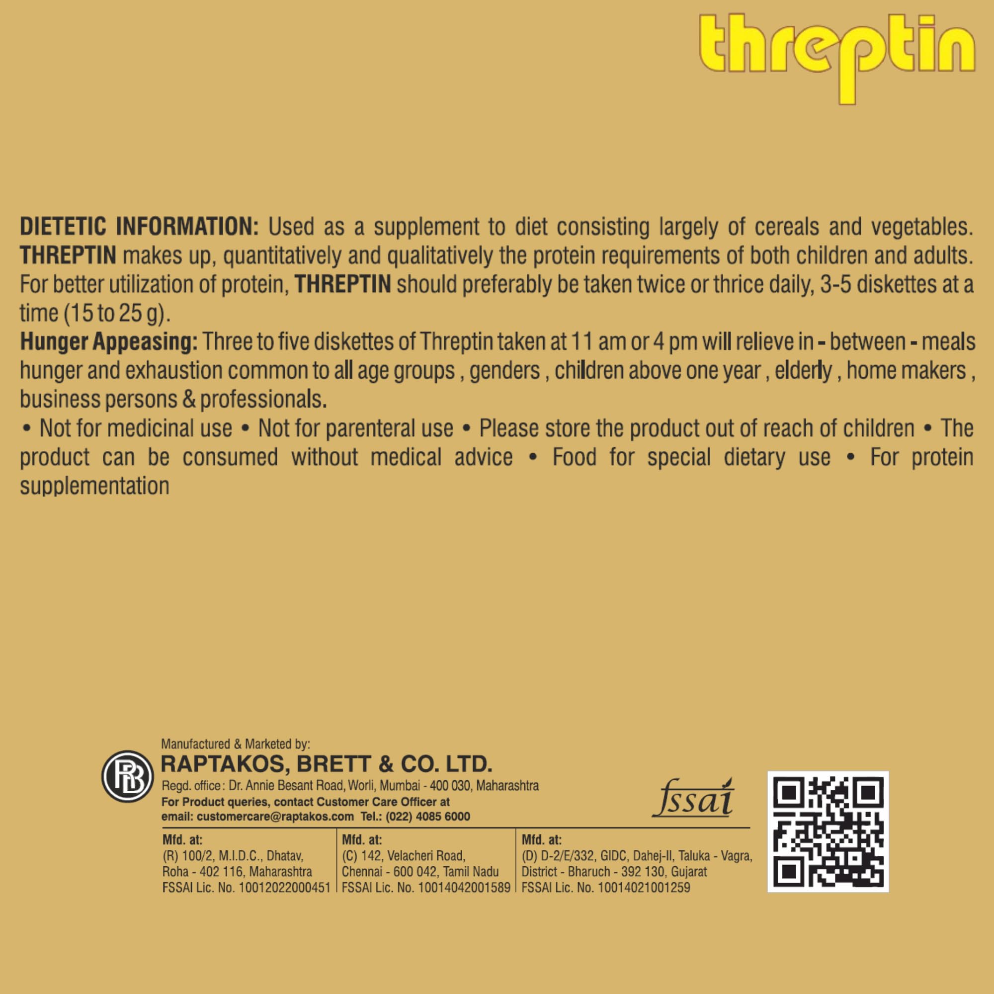 Threptin is an energizing and nourishing food that appeases hunger. Threptin contains casein which is a class 1 protein. Casein provides all essential amino acids required for good health. Therefore Threptin is the ideal meal between meals for everyone in the family.