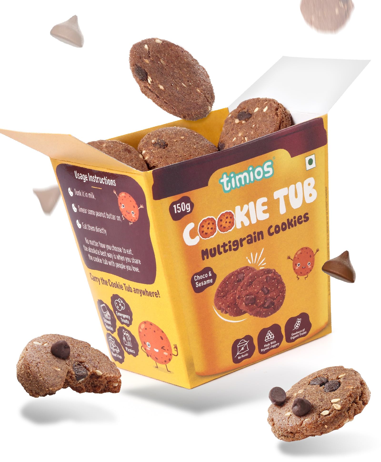 HomeGrocerySnacksCookiesTimios Eggless Cookies – Maida-Free & Jaggery Sweetened | No Preservatives or Artificial Additives | Rich in Iron, Calcium & Protein | Healthy Snack for Kids & Adults | 150g